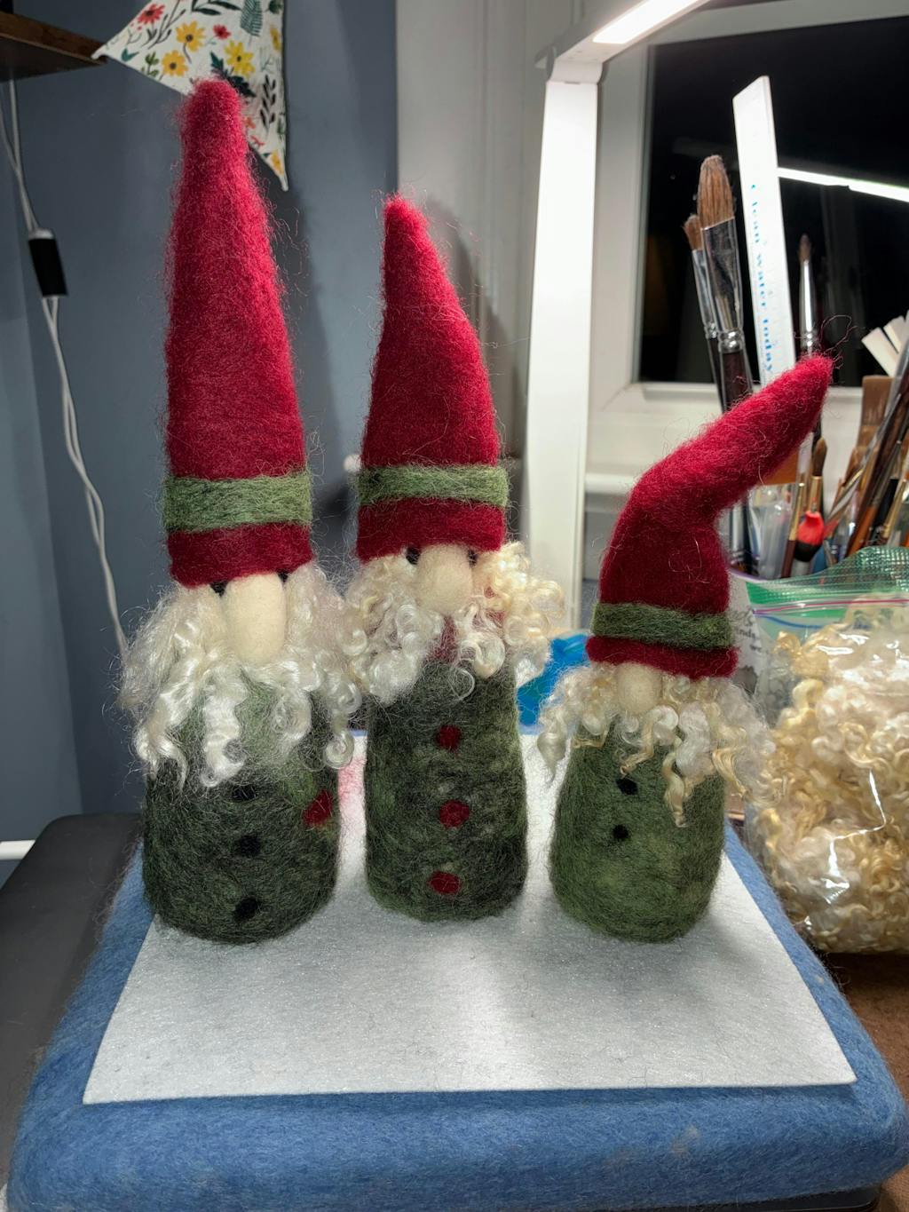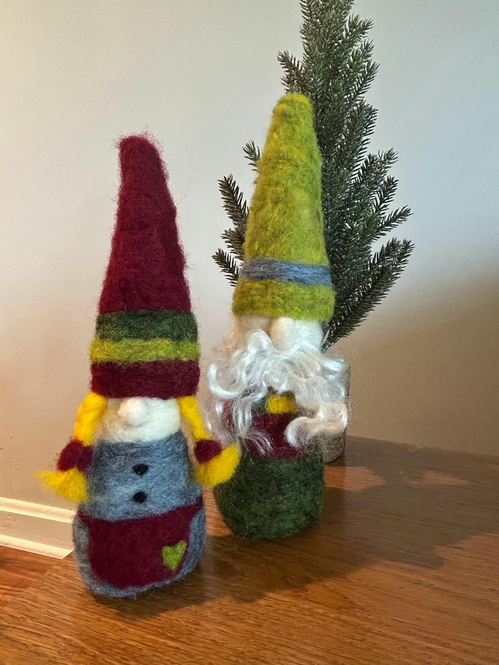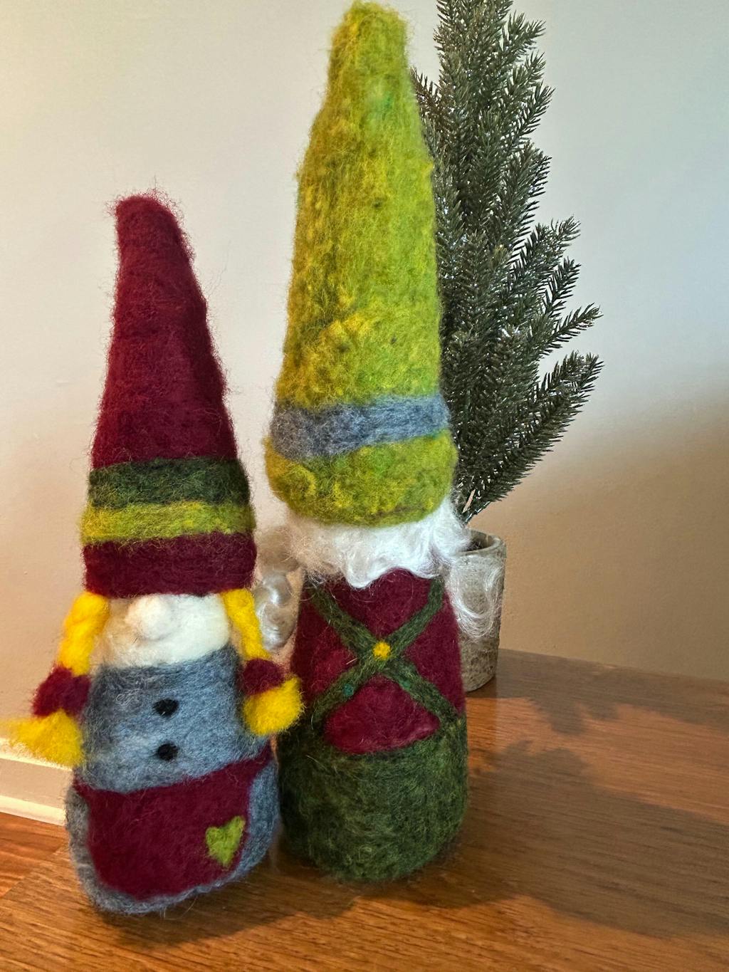 This was my first felting project! I enjoyed the zoom class and the kit I purchased provided everything I needed to make 2 brother Tomtens. The instructions were very easy to follow. After doing my first gnome during the zoom, I was able to make a brother tomten as well. I will give them to my toddler grandsons for Christmas.