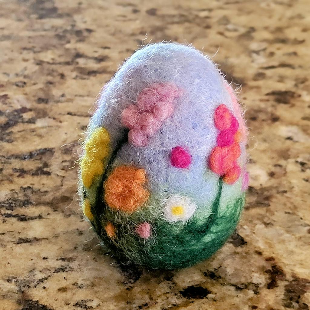 The Crafty Kit's Company's needle felting kit contains everything you need to make your own adorable Easter/Cottage Garden Egg. And this egg will last for many years!