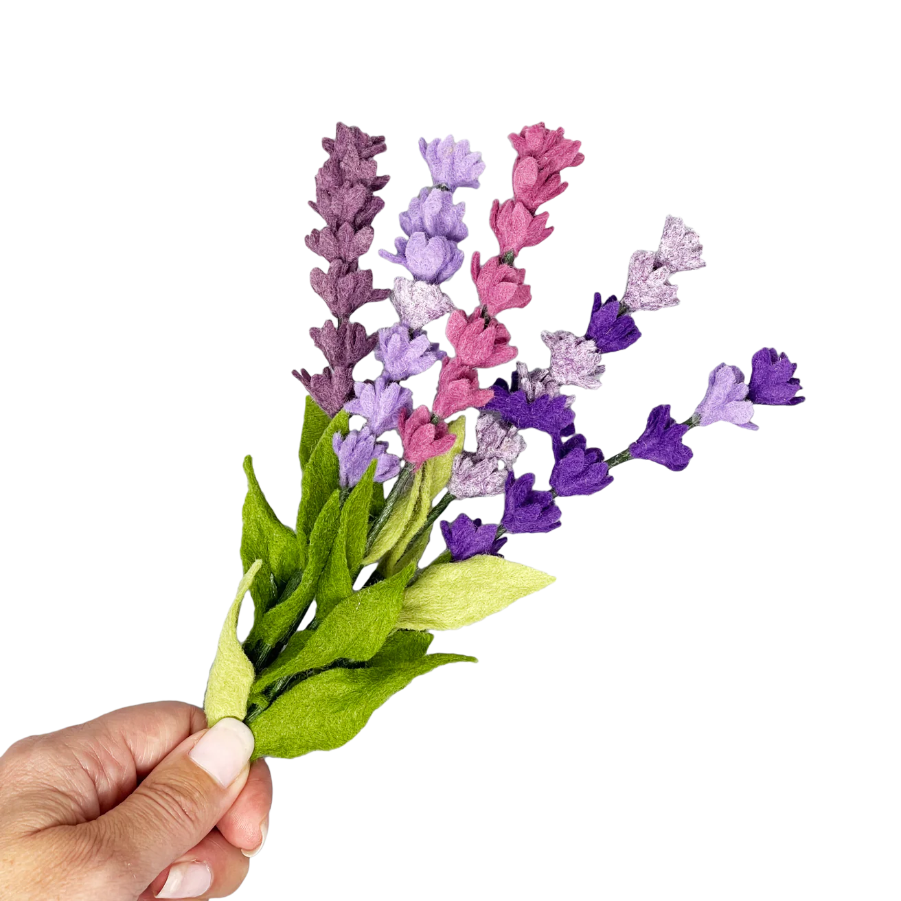 Your Felt Lavender Craft Kit contains: Wool mix felt fabric, florist stems, florist tape, step by step color instructions. N.B. Glue is not provided but is required to complete this craft kit - for best results a hot glue guns recommended