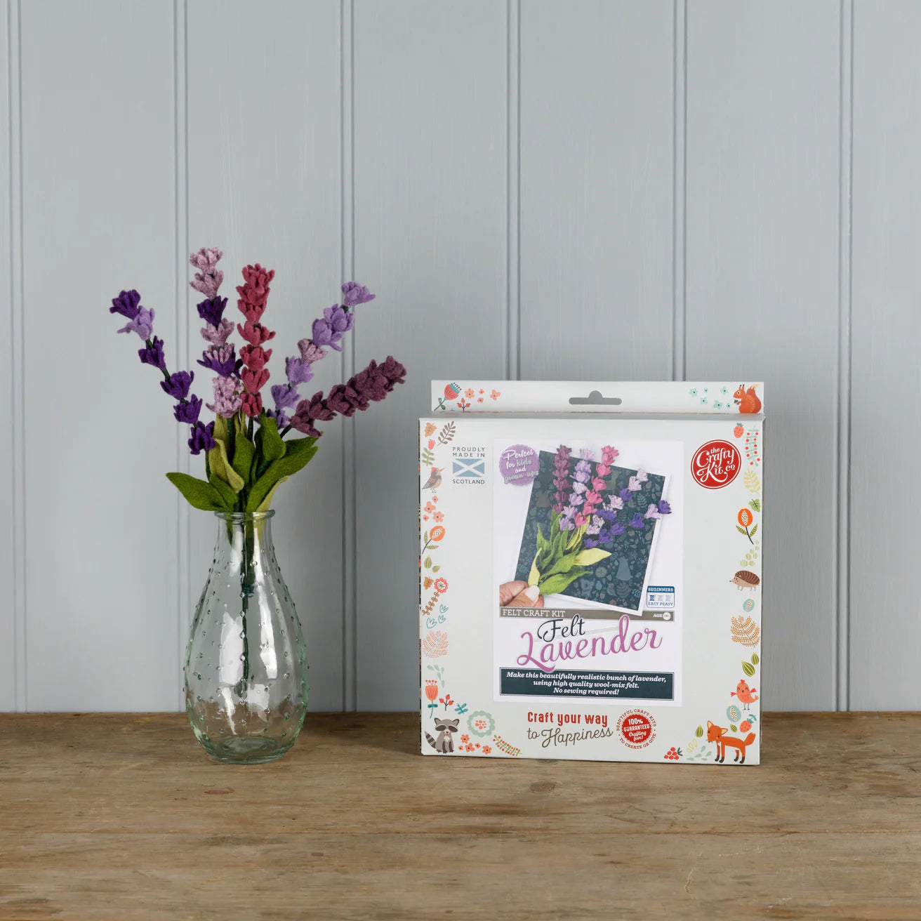 Discover the joy and simplicity of felt flower making with this lovely Felt Lavender Craft Kit from The Crafty Kit Company. You'll learn how to easily create petal and leaf shapes from beautiful quality wool mix felt, putting everything together to make truly realistic looking everlasting flowers. You'll just need scissors and glue.