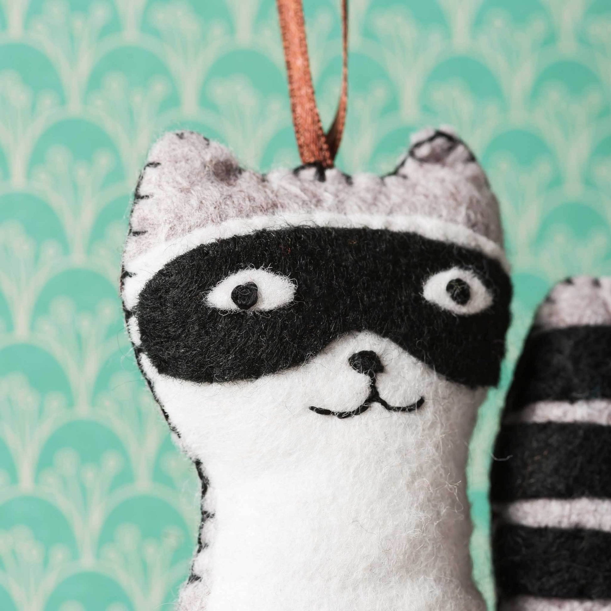 Our Raccoon mini craft kit contains everything you need to make one adorable felt hanging decoration.